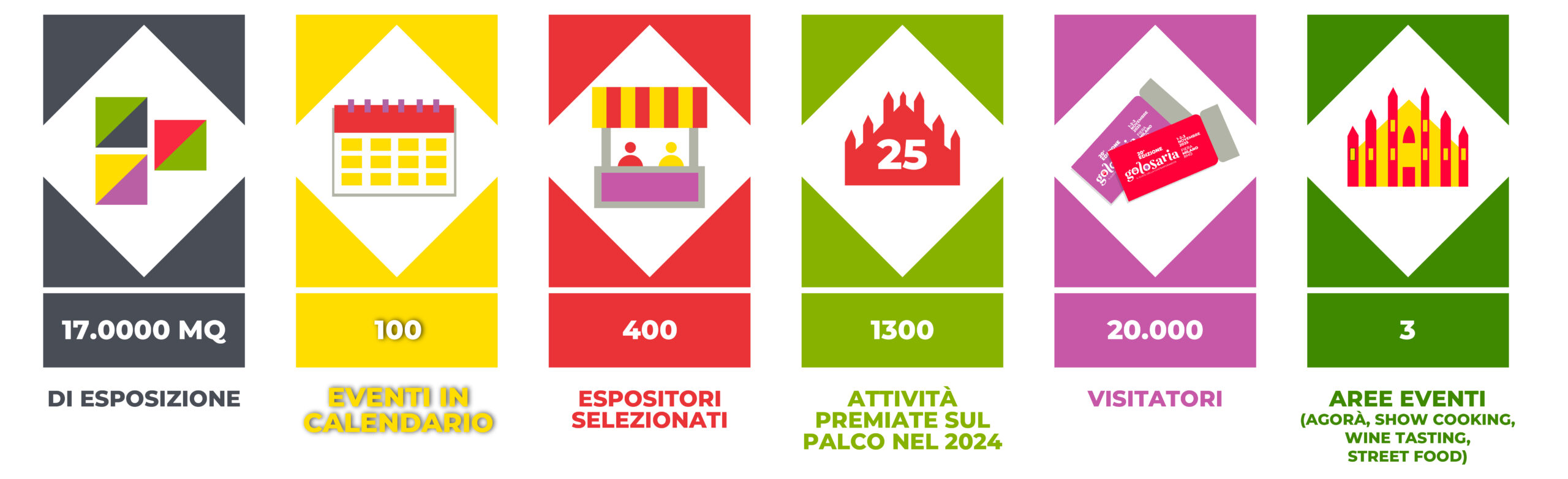 20° edizione di Golosaria: il meglio dell’agroalimentare italiano. Un viaggio tra produttori storici e start up innovative, per scoprire tradizione e nuove tendenze del gusto. 17.000 mq di spazio espositivo a Fiera Milano Rho , ti aspetta un’esperienza unica da vivere insieme.